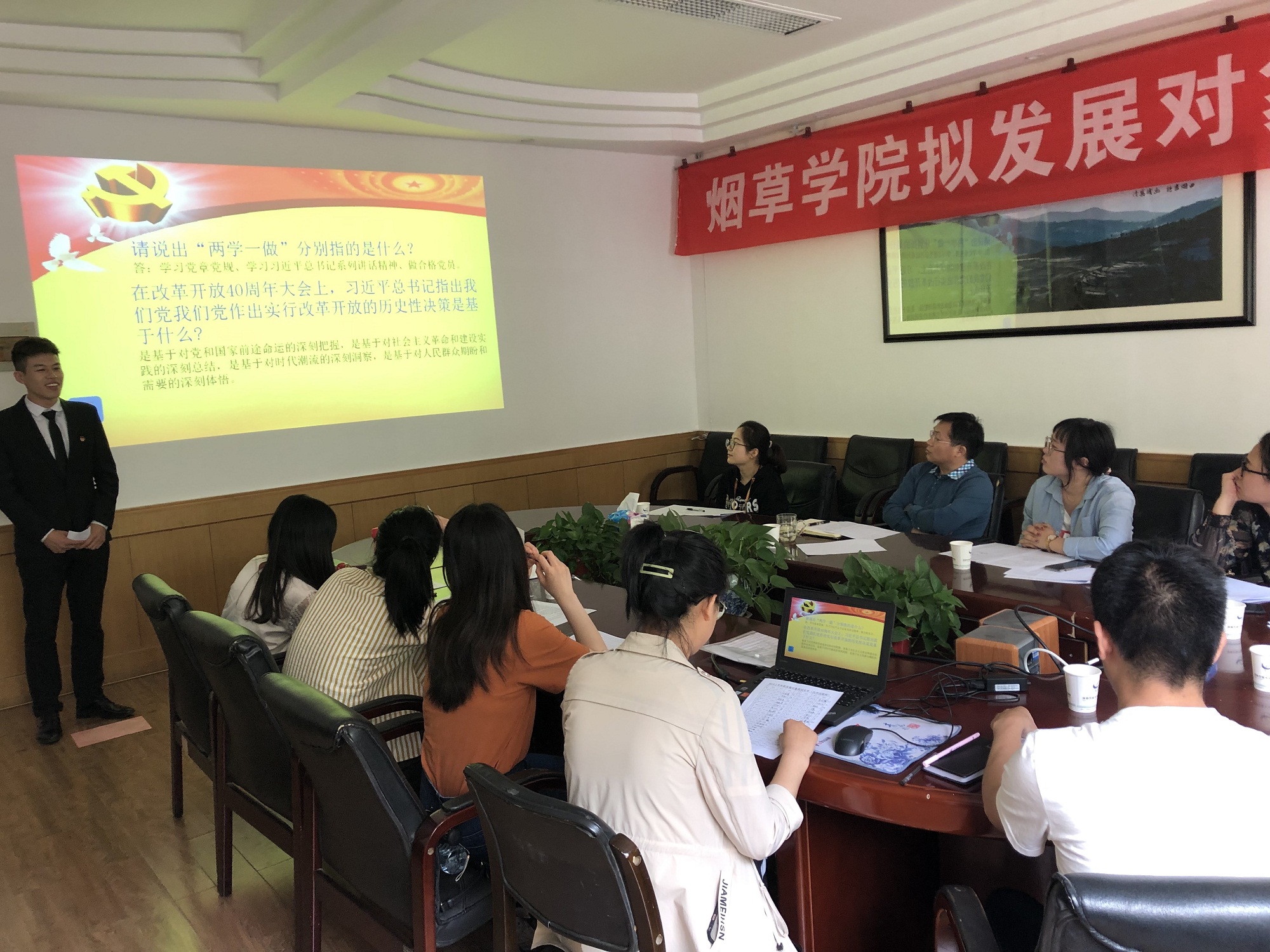 为严把党员发展质量“入口关”,综合考察党员拟发展对象的政治素养和党性修养,麻豆做爱 于5月14日在文化路校区17号楼208会议室举办麻豆做爱 党员拟发展对象答辩会。院党委书记李平、院党委副书记秦素玲、院团委书记徐涤寒、团委副书记郑丽娜、党委组织员王雪婧和各学生党支部书记参加此次答辩会并担任评委。